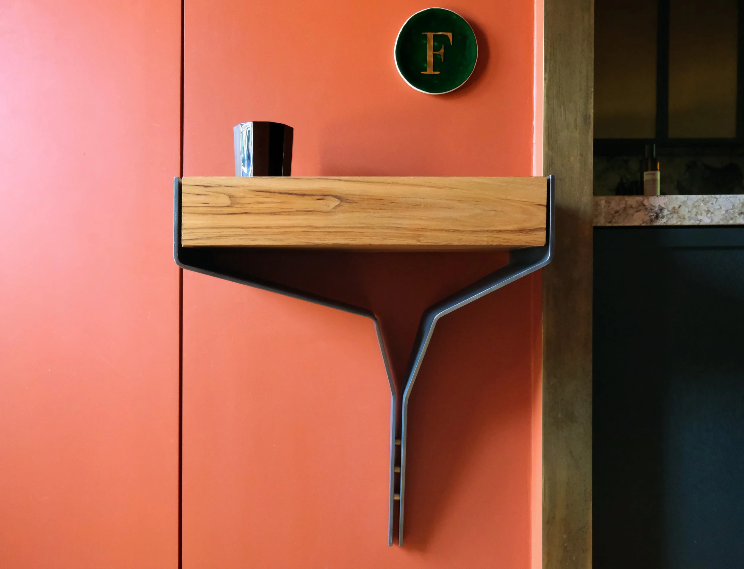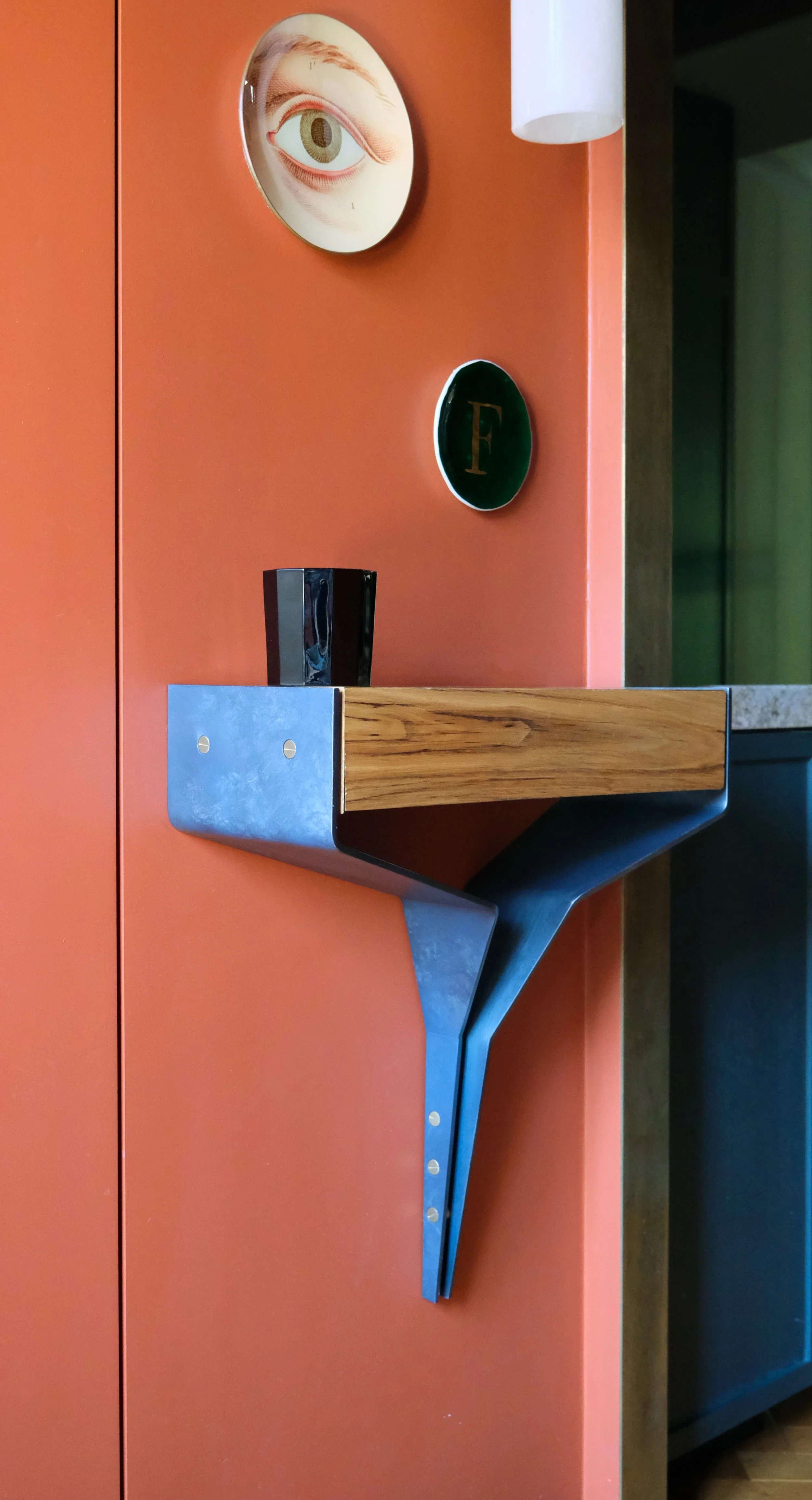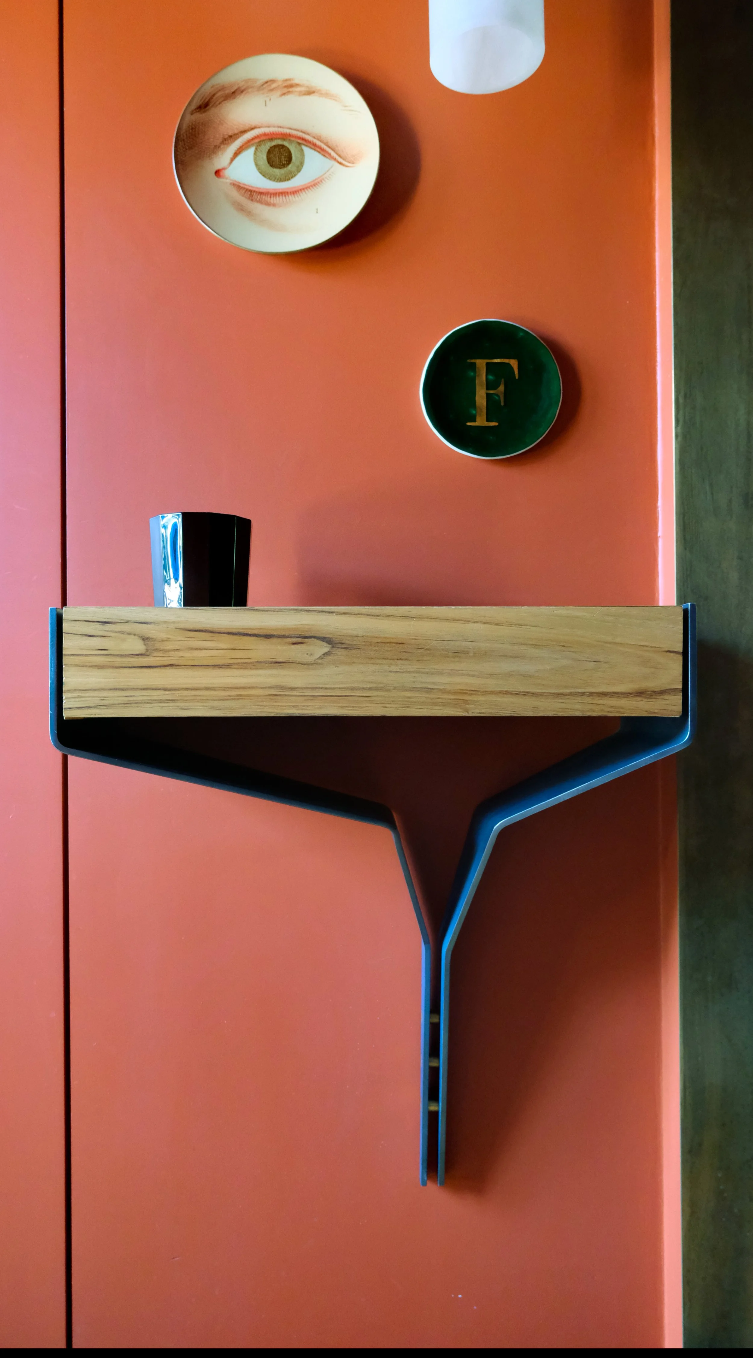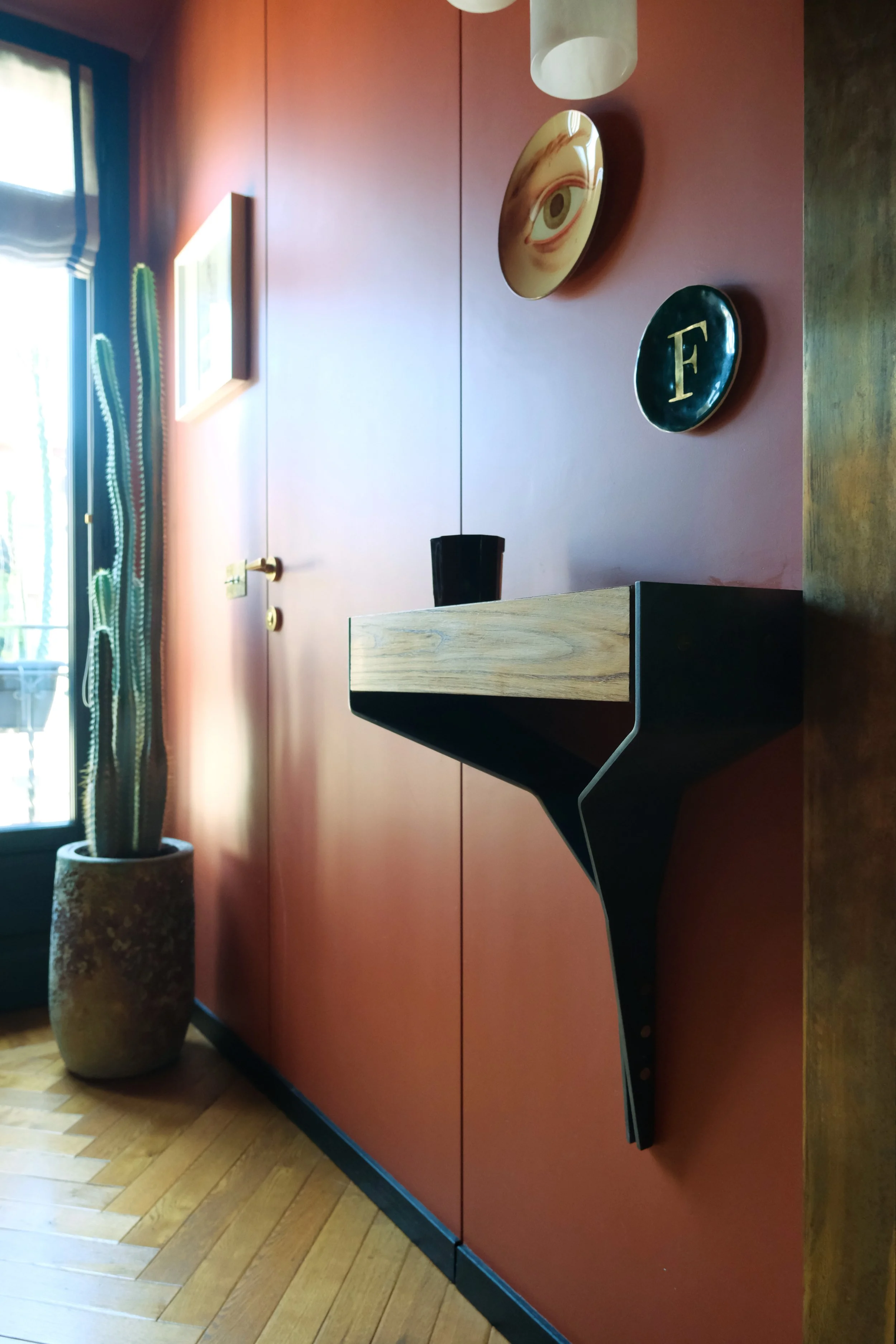 A small console for a milanese entryway, defined by sharp lines and a sense of harmonious balance. Its minimalist geometry and refined proportions create a welcoming yet sculptural presence in any space.